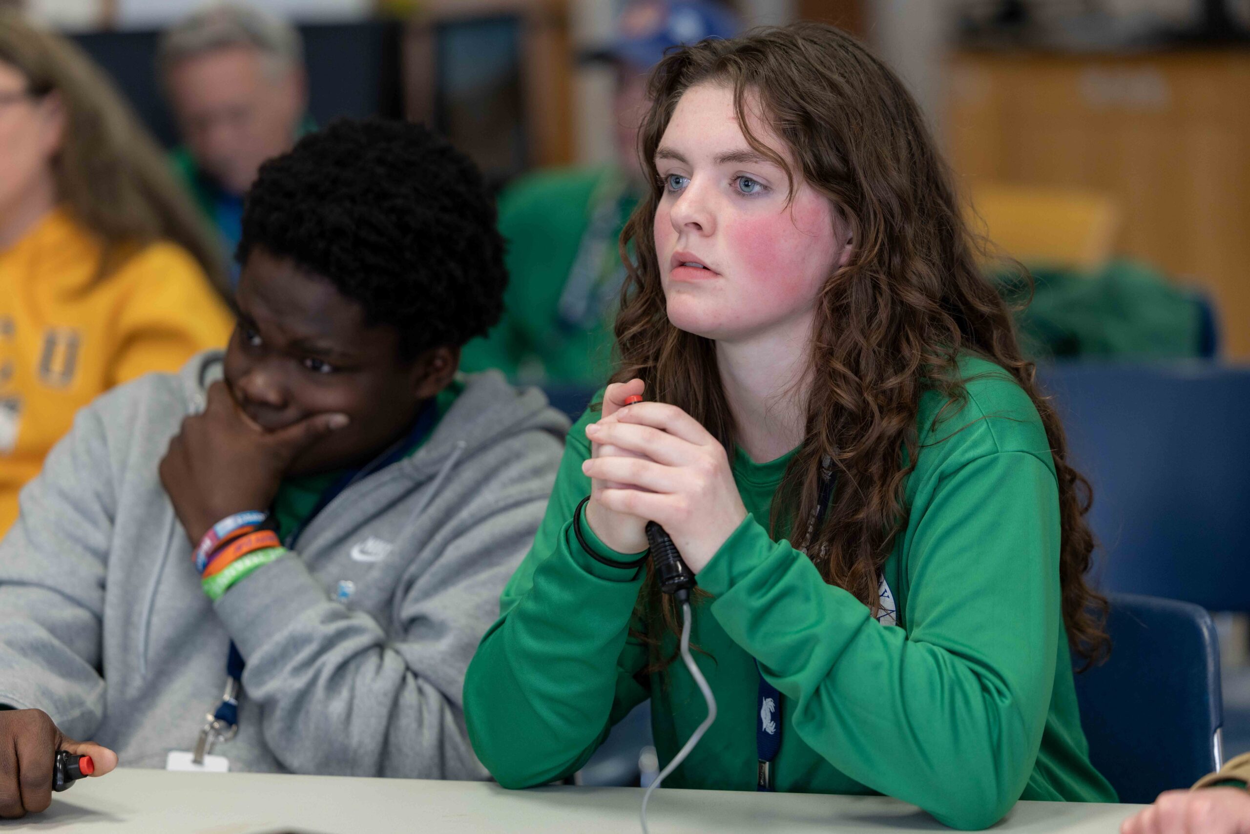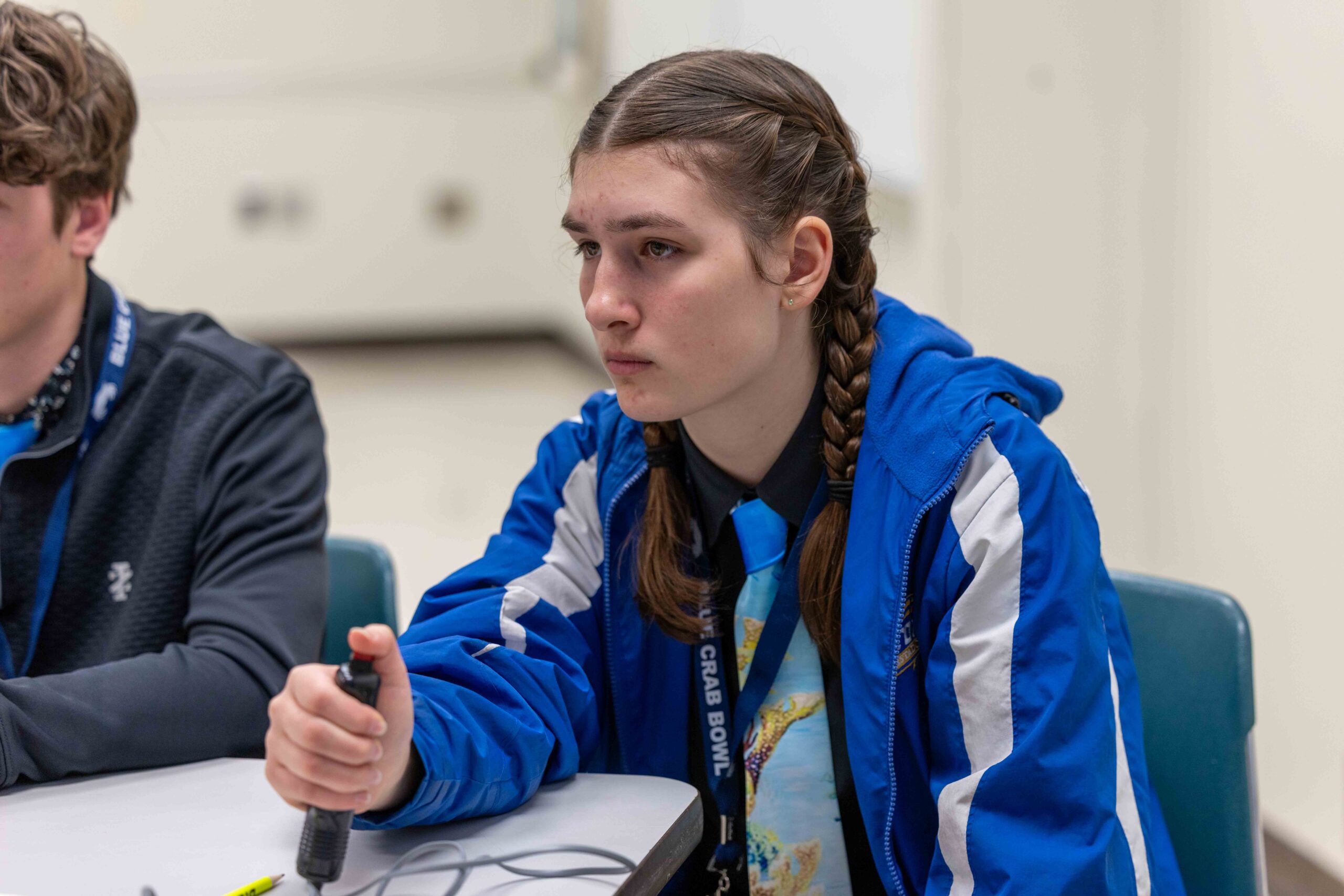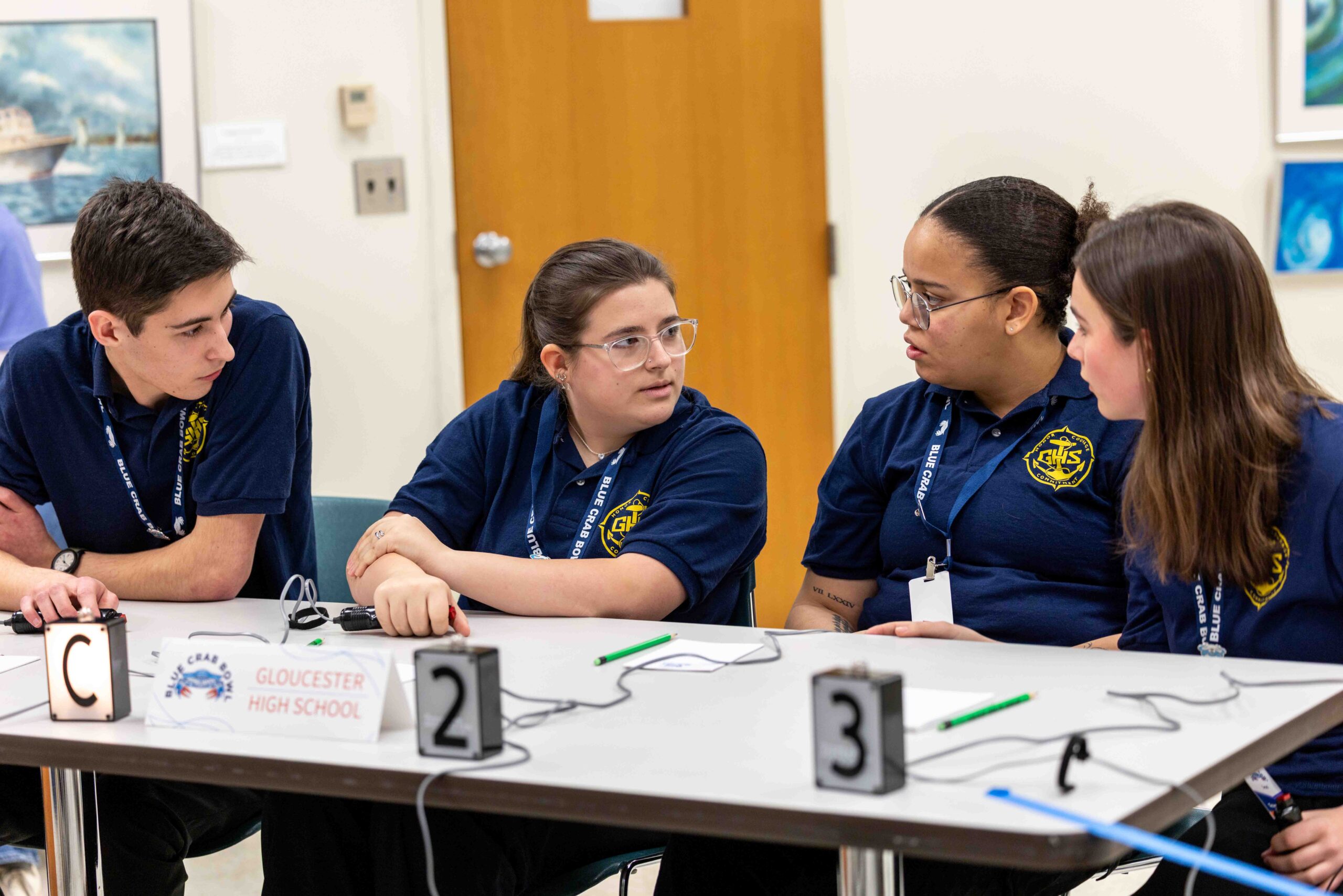 Duscher explains that competing students meet bi-weekly during a dedicated advisory period built into their program to practice for the Blue Crab Bowl. “During these sessions, students practice answering past Blue Crab Bowl questions and can work with their coaches for extra support or deeper learning on specific topics,” said Duscher. Each team member is also assigned marine science topics to study outside of school, ensuring broad expertise across the team.